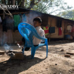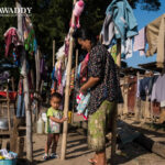 “He always says he wants a Kachin bag because he feels ashamed to go to school with the backpack that UNICEF gave him,” explained his mother Htam Hkawn, pointing to an old blue-colored backpack emblazoned with the UN Children Fund’s logo.
