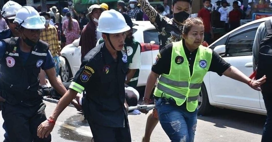 On March 3, four charity volunteers in North Okkalapa in Yangon were kicked, beaten with rifle butts and then detained by riot police during a crackdown on a demonstration.