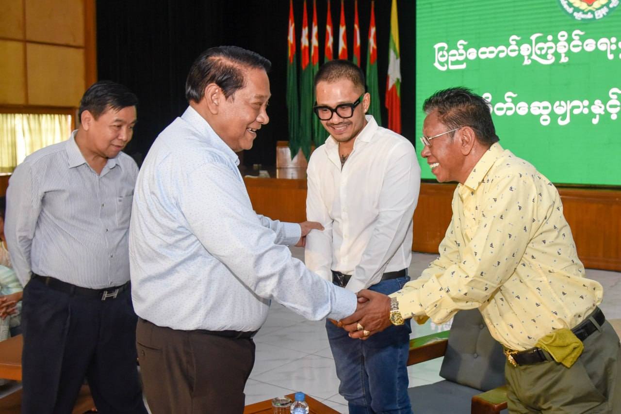 On Saturday, USDP chair Khin Yi met with pro-military artists in Yangon, urging them to promote public participation in the junta’s planned vote.